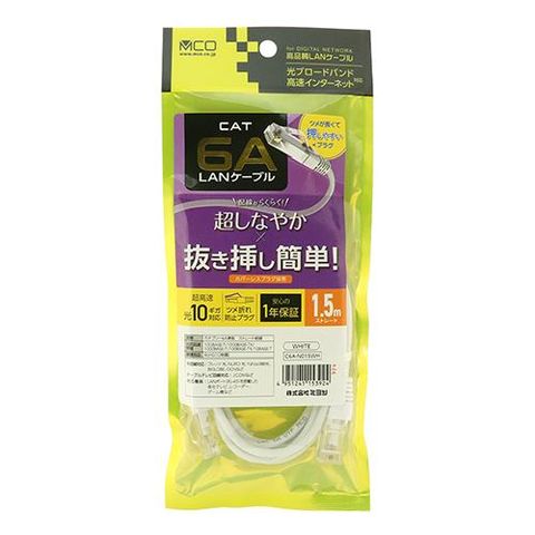 ミヨシ C6A-N015WH ホワイト 超しなやか 抜きやすいLANケーブル 1.5m