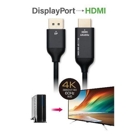 ミヨシ DP-HDC4K20/BK DisplayPort-HDMI変換ケーブル 4K 2m