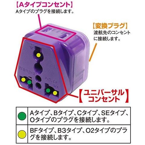 ミヨシ MBA-WA Aタイプ 海外電源変換アダプタ Wコンセント