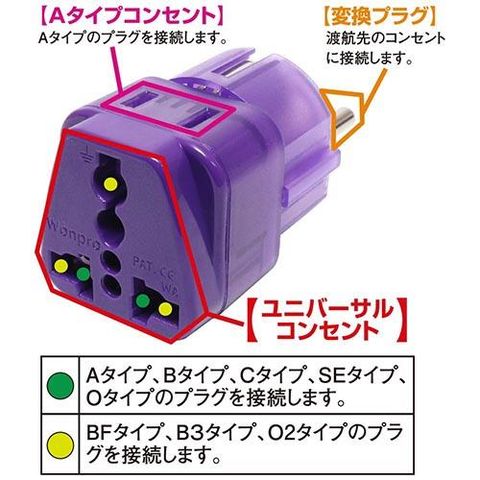 ミヨシ MBA-WSE SEタイプ 海外電源変換アダプタ Wコンセント