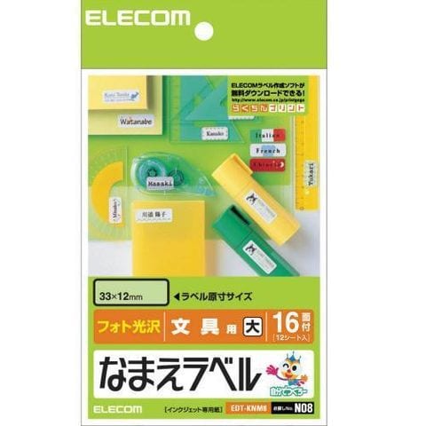 エレコム(ELECOM) EDT-KNM8 なまえラベル 文具用・大 光沢 はがきサイズ 16面 12シート