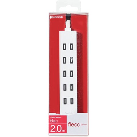 エレコム(ELECOM) T-NFL01-26 flecc barra 6個口 上挿し5・横挿し1 2m T-NFL01-2620WH ホワイト