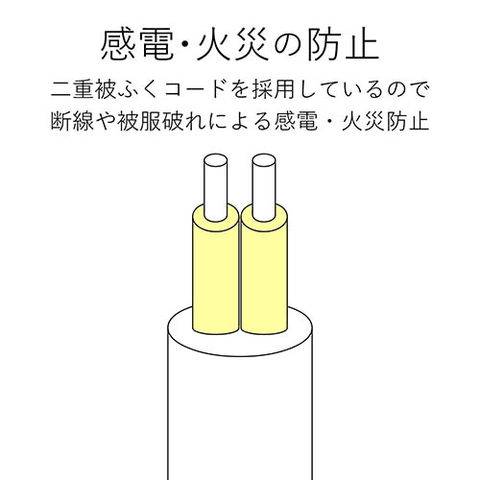 ■電源コードは一般社団法人日本配線システム工業規格に適合した二重被ふくコードを採用しており、断線や被ふく破れによる感電・火災の防止に有効です。