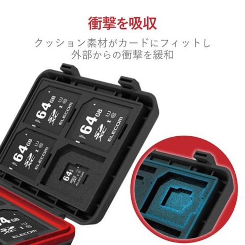 ■SDカードとmicroSDカードをコンパクトに収納できる耐衝撃メモリカードケースです。