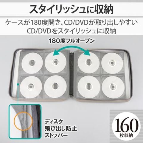 ■160枚のCD/DVDをスタイリッシュに収納できるCD/DVDファスナーケースです。
