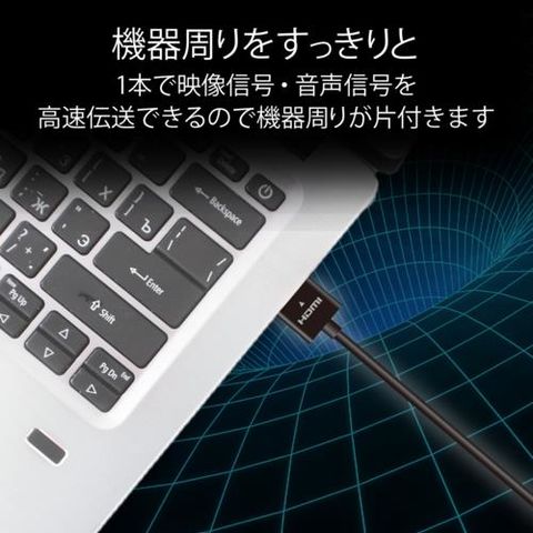 ■ケーブル直径約3.2mmで取り回しがしやすく、すっきり配線できる、スーパースリムタイプのイーサネット対応ハイスピードHDMIケーブルです。