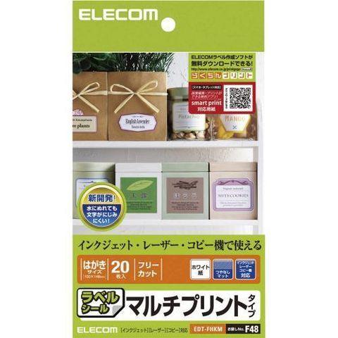 エレコム(ELECOM) EDT-FHKM マルチプリントラベル はがきサイズ フリーカット 20枚