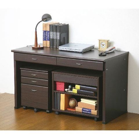 商品詳細サイズ:【デスク】引出内寸:(2杯)約W52.5×D33.5×H6(6.5)cm 側板厚み:約3cm 天板厚み:約2.3cm、【チェスト】引出内寸:(小2杯)約W31.5×D30.5×H5cm (大1杯)約W31.5×D30.5×H15(21.5)cm、【ラック】引出内寸:約W52.5×D23.5×H5(6.5)cm 空間内寸:約W55.5×D27.5×H33cm(可動棚1枚付、6.6cmピッチで4ヶ所移動) キャスター(ストッパーなし)は、チェスト5ヶ付、ラック4ヶ付