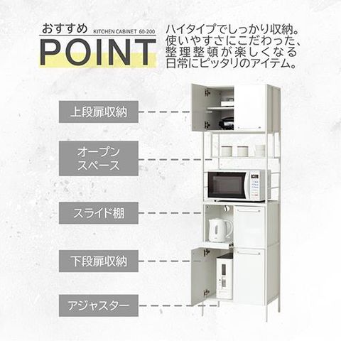 クロシオ 【組立式】 48005 NEWアート食器棚60-200 鏡面ホワイト