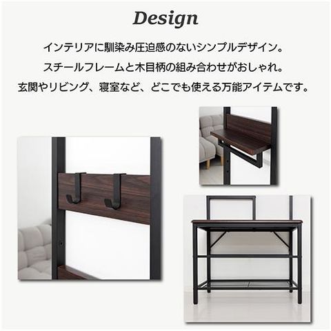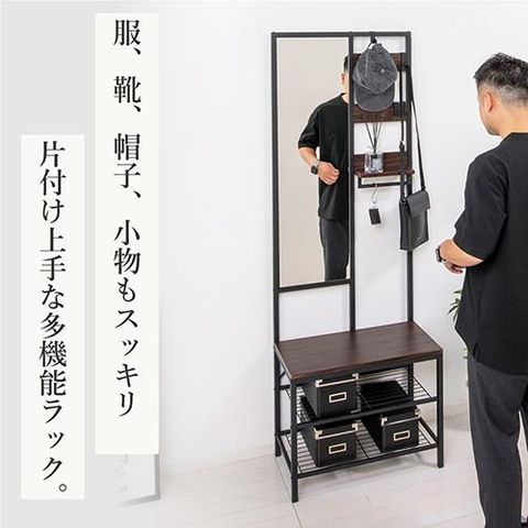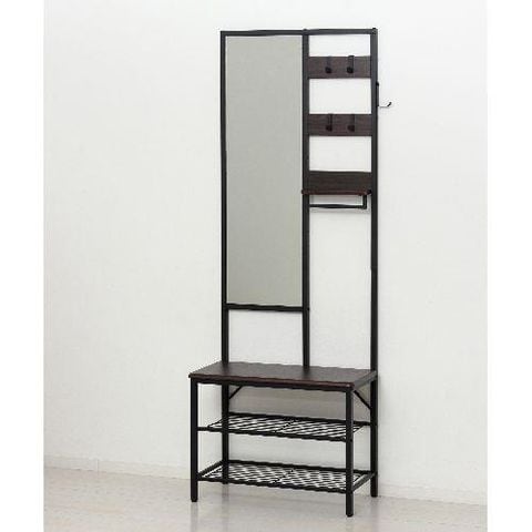 クロシオ 【組立式】62227 多機能ハンガーラック ミラー付 ブラウン