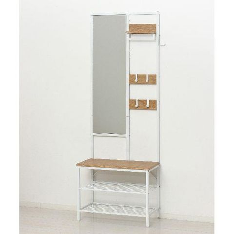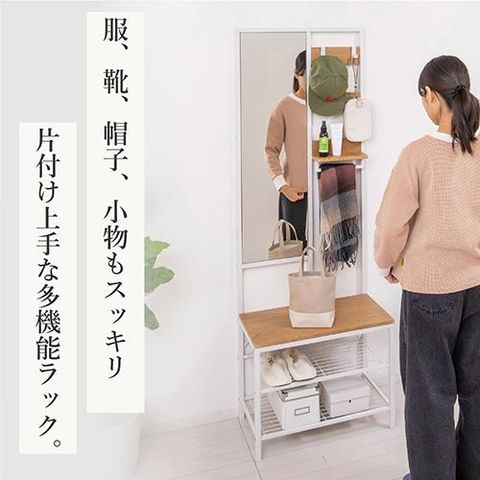 クロシオ 【組立式】62229 多機能ハンガーラック ミラー付 ナチュラル