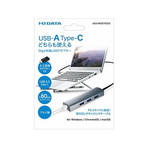 IODATA(アイ・オー・データ) US3-HB3ETG2/C USBハブ搭載ギガビットLANアダプター 変換アダプター付