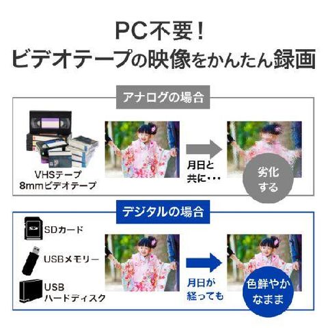 ■PC不要でVHSやminiDVなど、磁気テープのデータを簡単にデジタル化できるアナログキャプチャーです。