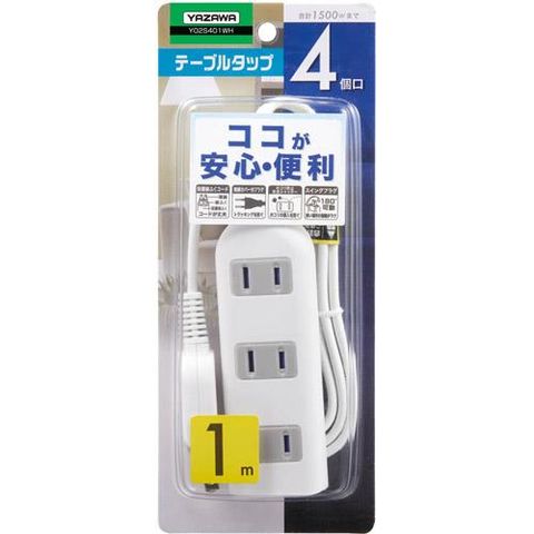 ヤザワ 耐トラ付タップ 4個口 1m Y02S401WH ホワイト