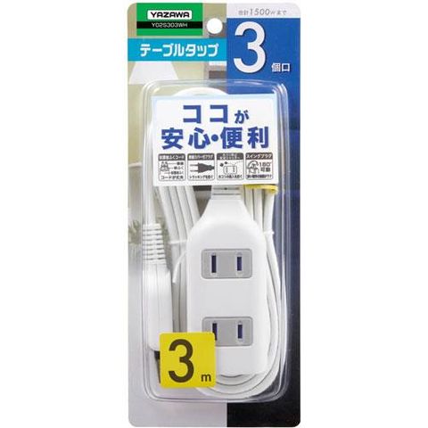 ヤザワ 耐トラ付タップ 3個口 上挿し2・横挿し1 3m Y02S303WH ホワイト