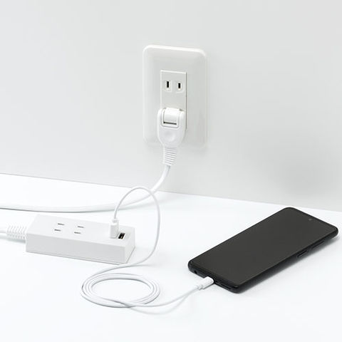 ヤザワ H14022UWH ホワイト USBタップ コンセントケーブル 2個口 2m スイングプラグ