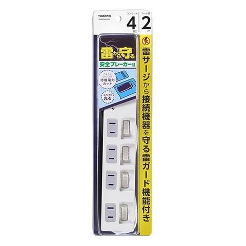ヤザワ H4BKS442WH ホワイト 雷ガード付4個口節電タップ 2m