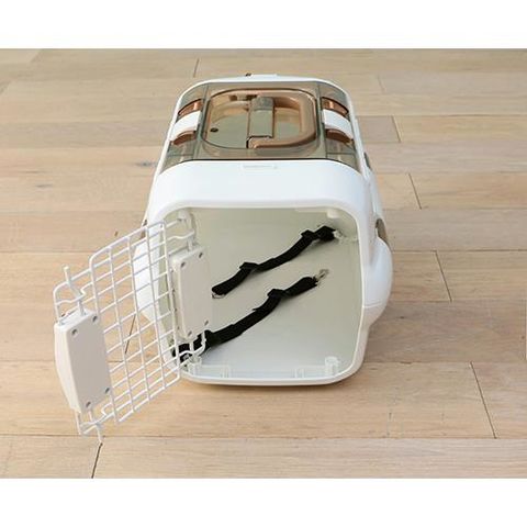 ■ドライブボックス、ハウス、キャリーとして使用できる、おでかけに、普段使いに、便利なキャリーです。天面扉は両開きで、上からのペットの出し入れが大変便利です。前面扉は左右どちらからも開く仕様です。また、ハウスとして使用する際は扉を取り外せます。別売の給水ボトルを取り付けることができます。プラスチック製なので汚れても水洗いできて、いつでも清潔を保てます。