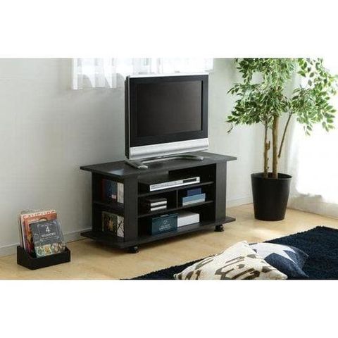 ●オープンタイプなので、簡単にしまったものを取り出し使用できます。サイドの棚にはDVDもしまえます。