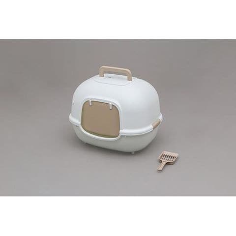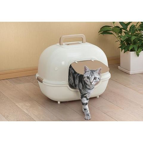 ■コンパクトサイズでケージの中にぴったり置ける猫トイレです。横漏れ防止構造で、おしっこが壁面をつたって外に漏れるのを防止します。トイレの内側にスコップを収納できるので、見た目もすっきりします。臭いが広がりにくい扉付きフルカバー、脱臭剤が入れられるポケット付きです。ワイドな出入り口で、身体の大きな猫ちゃんにも安心です。