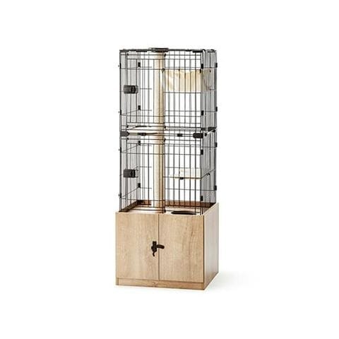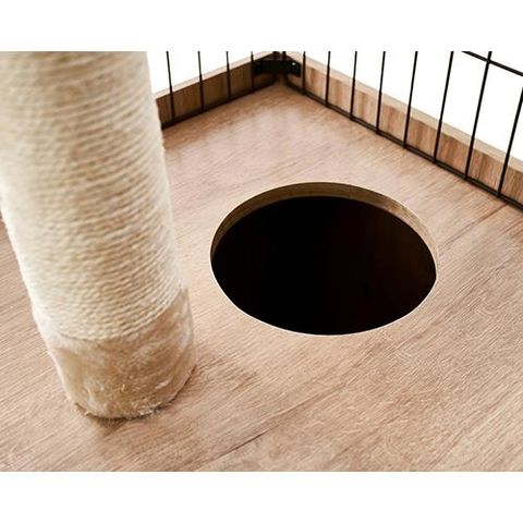 ■キャットケージ、キャットタワー、収納が一つになった1台3役の隠れ家キャットランドケージです。ハンモック付きでケージの中でもゆったりくつろげます。ステップ付きなので、上り下りしやすいです。ゆったり過ごせるボックス付きで、トイレを隠せばお部屋をすっきりさせることができます。