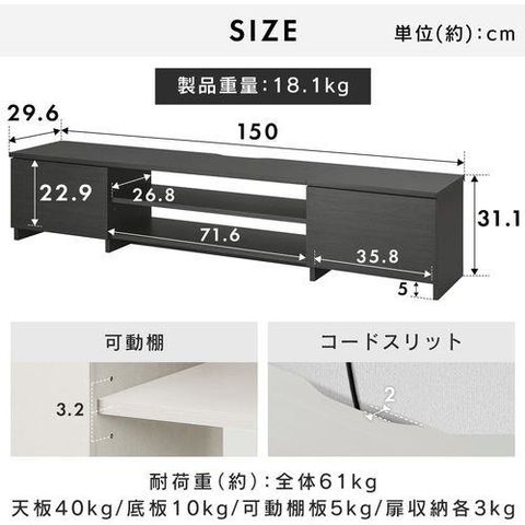 サイズ(cm):幅約150×奥行約29.6×高さ約31.1