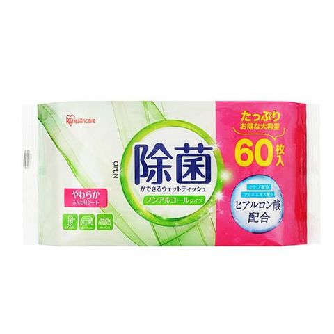 アイリスオーヤマ(Iris Ohyama) WTS-60N8P 除菌ができるウェットティッシュ ノンアルコールタイプ 60枚入×8個パック