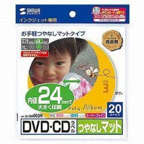 サンワサプライ LB-CDR002N DVD/CDラベル つやなしマット 内径24mm 20シート