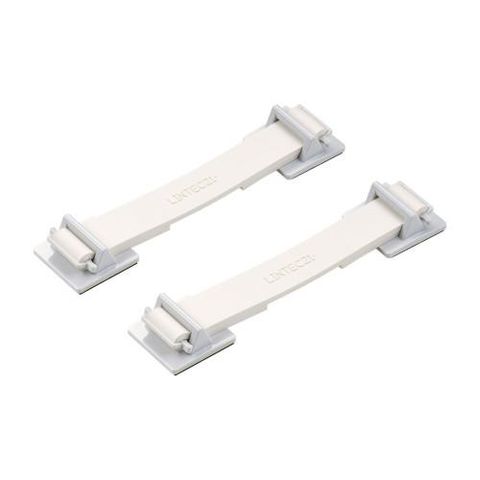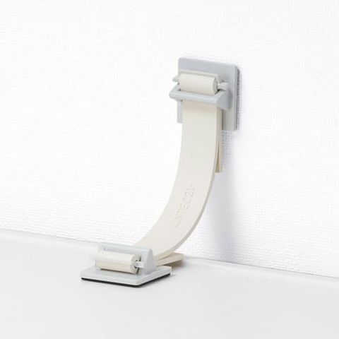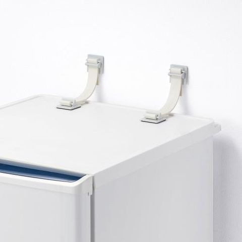 ■ゴムベルトの両端に取り付けられた接着パッド付きフックの一方を冷蔵庫に、もう一方を壁面に接着固定して使用します。