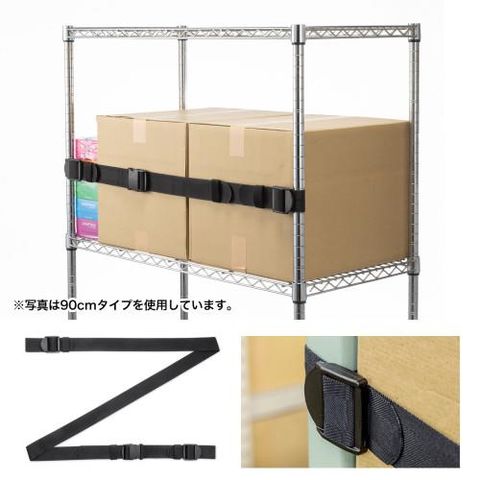 ■オープン棚に収められた書類、ケースなどの収納物の落下を防止するベルトです。