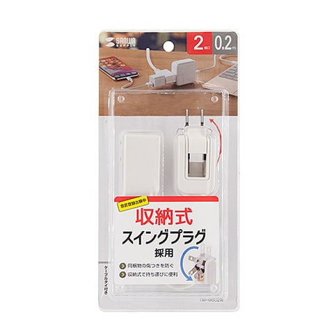 サンワサプライ TAP-M602W ホワイト マイクロ電源タップ 2個口 横挿し 0.2m