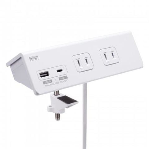 サンワサプライ TAP-B105UC-3W ホワイト クランプ固定式タップ 2P 4個口