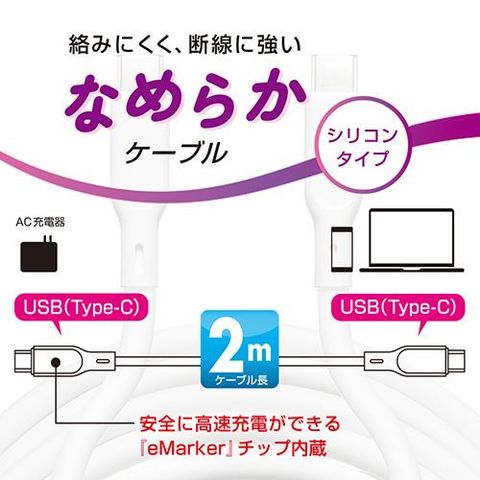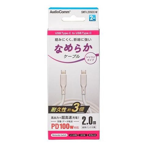 オーム電機(OHM) SMT-L20SCC-W AudioComm なめらかケーブル USB-C to C 2m ホワイト