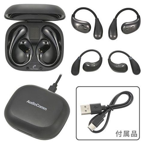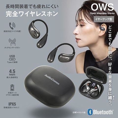 オーム電機(OHM) HP-W610N-K ブラック AudioComm 完全ワイヤレスイヤホン OWS Bluetooth5.4 HSP HFP A2DP AVRCPイヤーカフ イヤーフック 03-3193