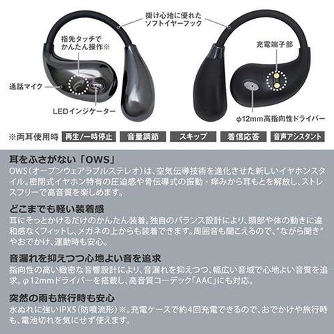 ■耳をふさがない「OWS」耳にそっとかけるだけのかんたん装着