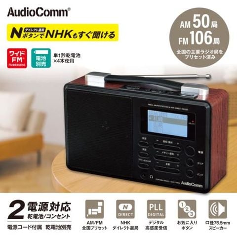 オーム電機(OHM) RAD-T700N AudioComm Nラジオ ポータブルAM/FM ワイドFM対応 03-5700