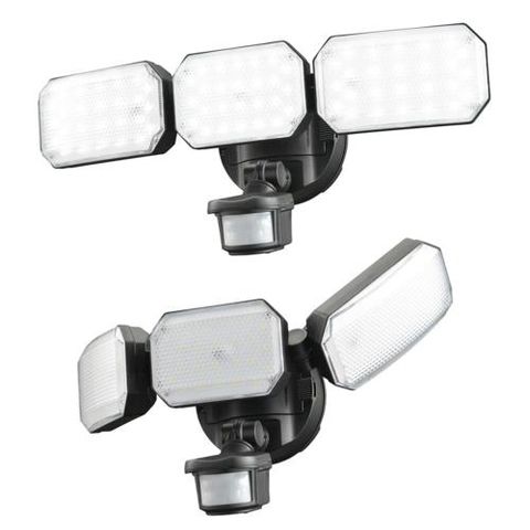 オーム電機(OHM) LS-B313 monban 防犯センサーライト 3灯 リチウム充電池式 2500ルーメン