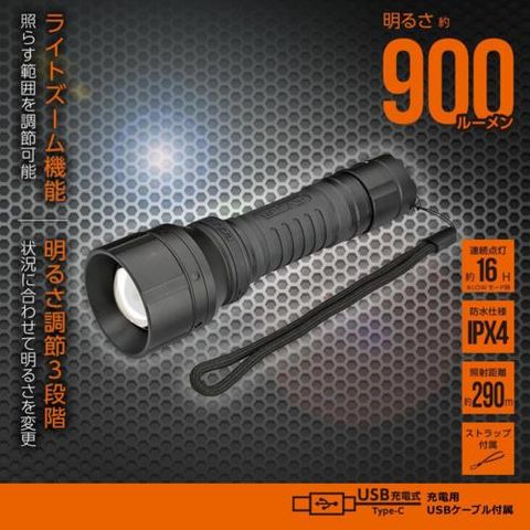 オーム電機(OHM) LHA-ZC90A7 LEDズームライト ラバーグリップ ECLAT USB充電式 900ルーメン