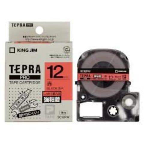 キングジム(KING JIM) テプラPRO 強粘着ラベル 赤 黒文字 12mm SC12RW