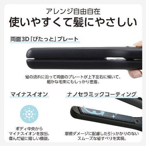 ■幅13mmのスリムプレートで、根元から毛先まで細かなアレンジが可能なストレートヘアアイロンです。
