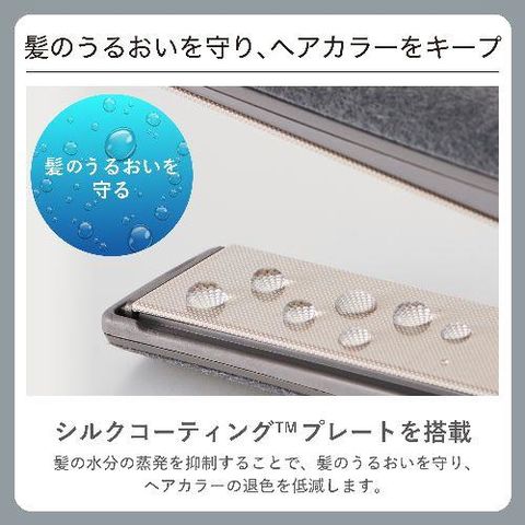 ■シルクコーティング(TM)で髪のうるおいを守り、ヘアカラーをキープするストレートアイロンです。