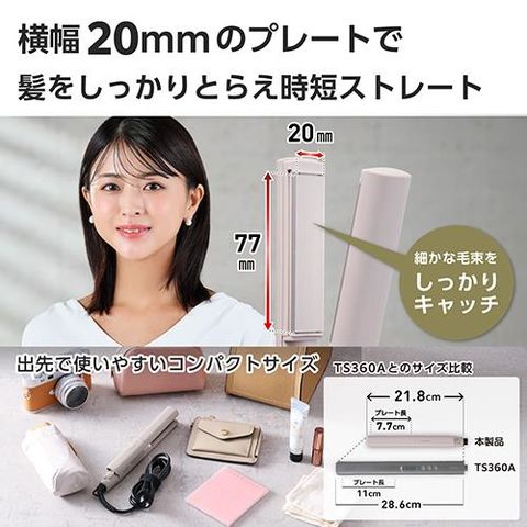 ■コンパクトでも髪をしっかりとらえる横幅20mmのプレートで時短ストレート。ストレートはもちろん、毛先ワンカールもできます。トップ立ち上げ、寝癖直しや毛先のニュアンスカールなどにもおすすめです。