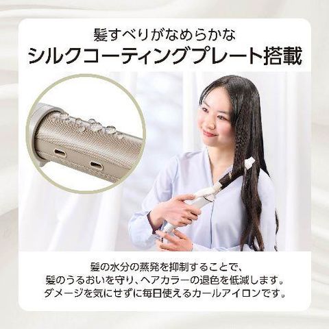 ■シルクコーティングで髪のうるおいを守り、ヘアカラーをキープするカールアイロンです。