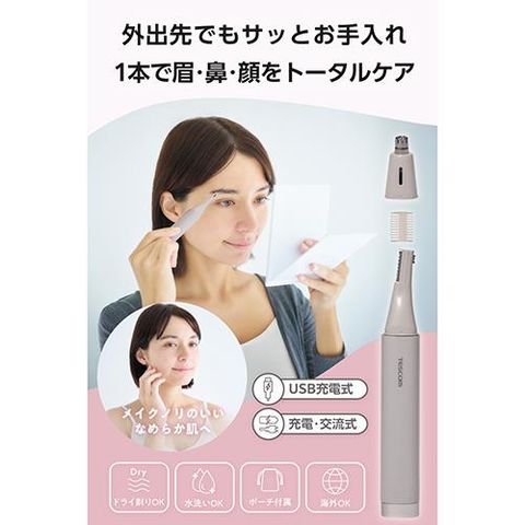 テスコム(TESCOM) TT321A-C グレージュ フェイスシェーバー 眉・鼻・顔これ1本 うぶ毛 電動 USB Type-C充電 コンパクト ポーチ付き 海外使用OK