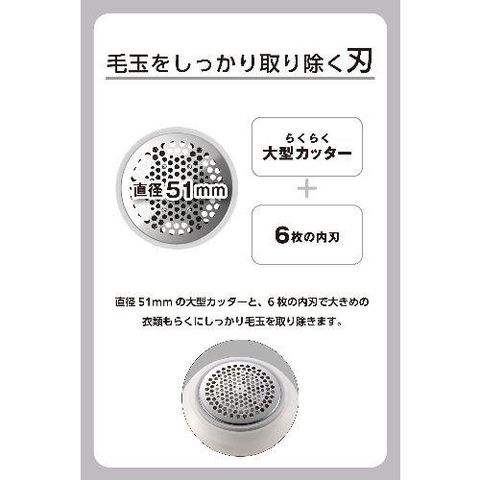 ■51mmの大型カッターと、6枚の内刃が毛玉を逃さずしっかり取り除きます。