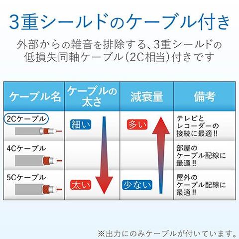 ■3重シールドの低損失同軸ケーブルを使用