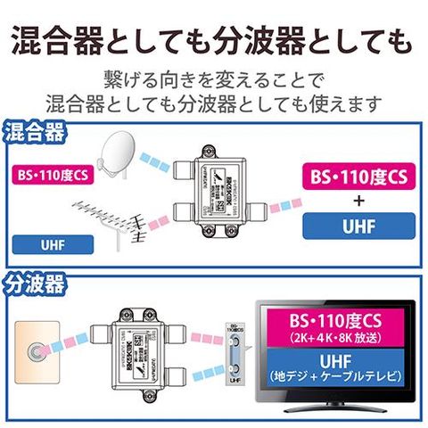 ■CATV/UHF電波とBS・CS電波を1つに混合または分波するための機器。
