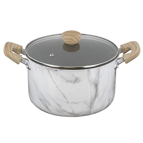 ベストコ NX-143(ホワイト) 両手鍋 22cm シチューポット IH ガス火対応 大理石柄 MARBLE KITCHEN