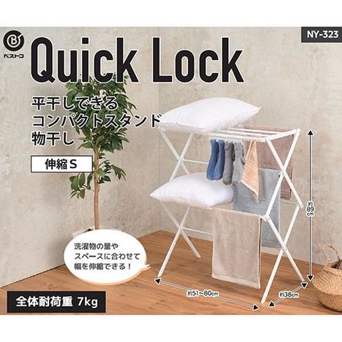 ベストコ NY-323 ホワイト LIV PLUS Quick Lock 物干しスタンド 平干し 伸縮 折り畳み 室内干し コンパクト S