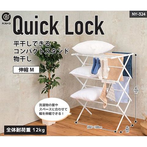 ベストコ NY-324 ホワイト LIV PLUS Quick Lock 物干しスタンド 平干し 伸縮 折り畳み 室内干し コンパクト M
